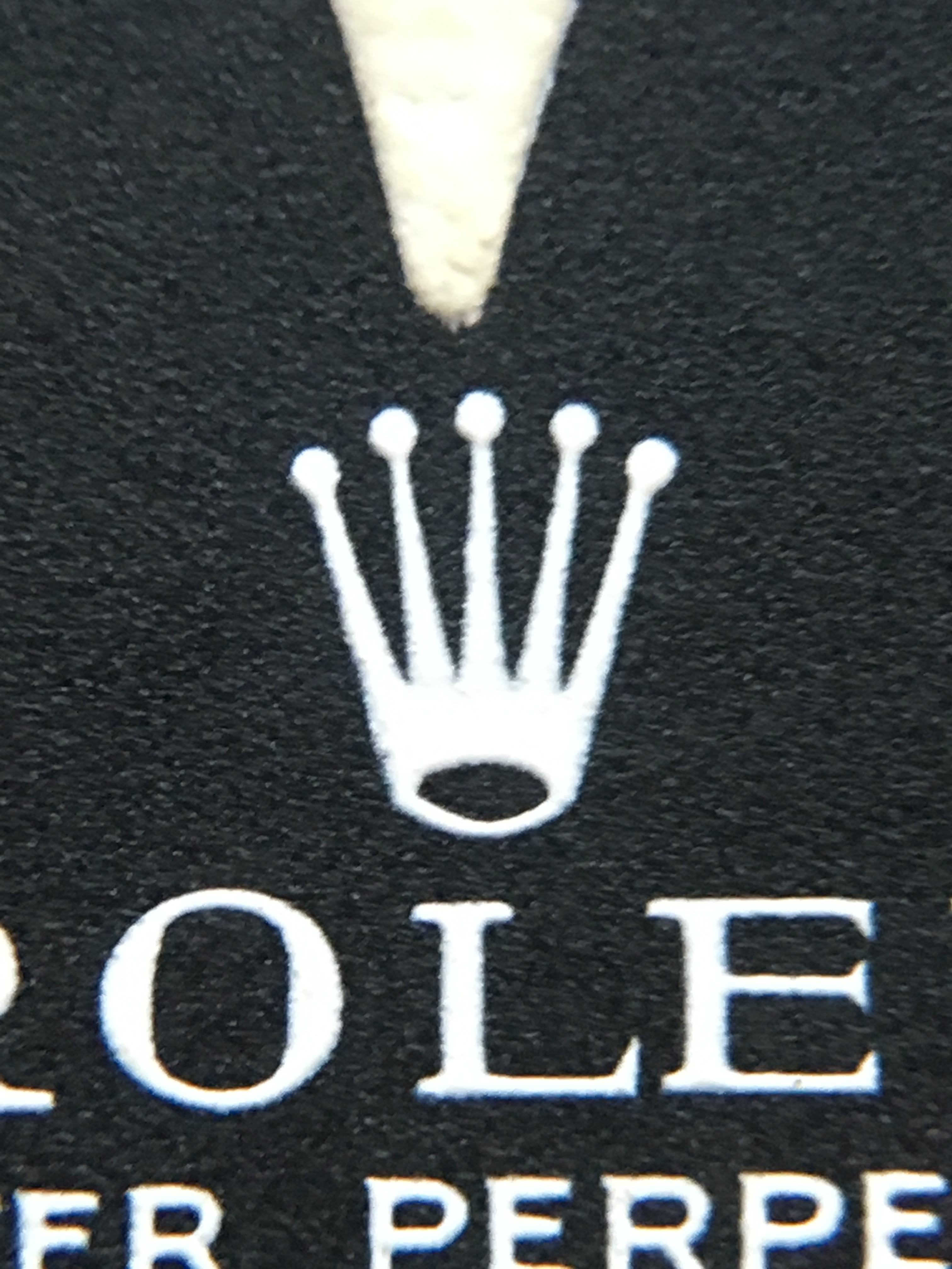 Distinguishing Characteristics: The Mark 1 dial is very easy to pick out amongst matte dial 1675s. Look first at the coronet and then look at the E in Rolex. If the coronet is string-like and the E has a long middle bar, it is a Mark 1.