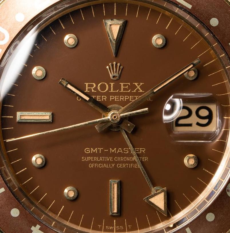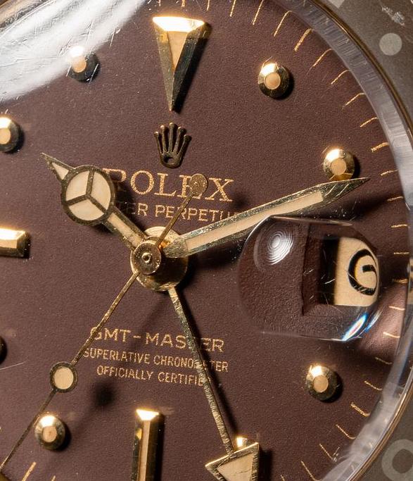 - Finish: Unlike the matted appearance of most dials from the 1970s, some early Mark 2 brown dials (and all Mark 1 brown dials) are smooth and reflective in appearance. These are seen on most Concorde GMTs and overlap with the early grainy/matte dials. Sometime in the early 2m serial range, the smooth dials stop being produced and the sandy textured dials are produced exclusively until the soliel Mark 5 dial is introduced in the late 1970s. Below you can see the difference between a smooth, early dial and a matte, later dial.