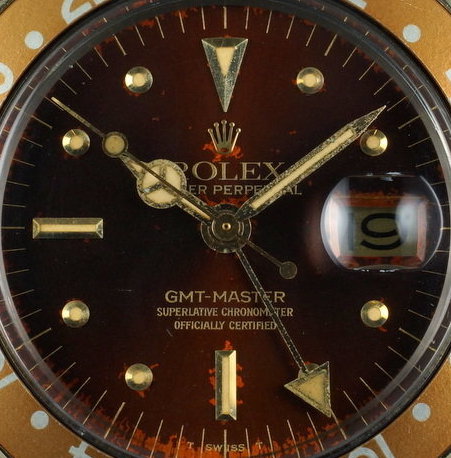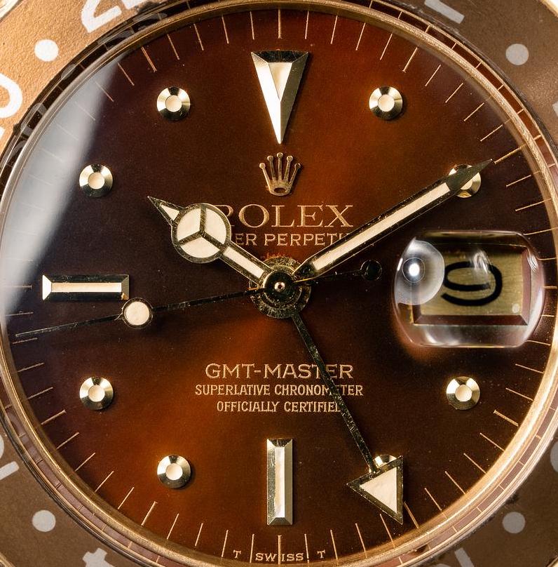 General Notes: This dial is a production dial both on the steel and gold cased 1675/3 and gold 1675/8 during the 1970s. It is also used as a service dial for earlier 1675/3 and 1675/8 watches, so if a 1675/3 or /8 has this dial and serial number below 5m, it is likely a service replacement. The Mark 5 brown dial stops the use of the matted, grainy surface seen on Mark 2, 3, and 4 dials and transitions to the glossy dial most associated with the 1980s.