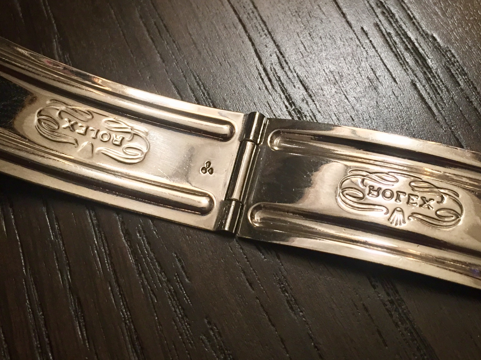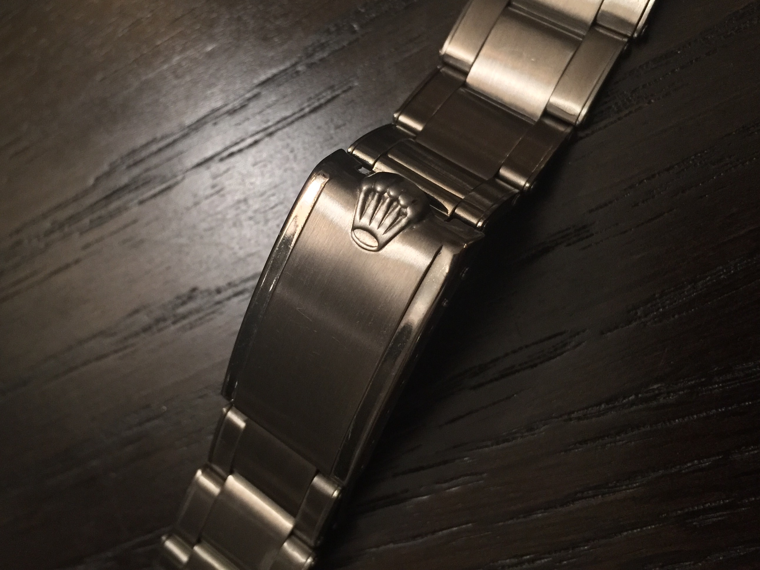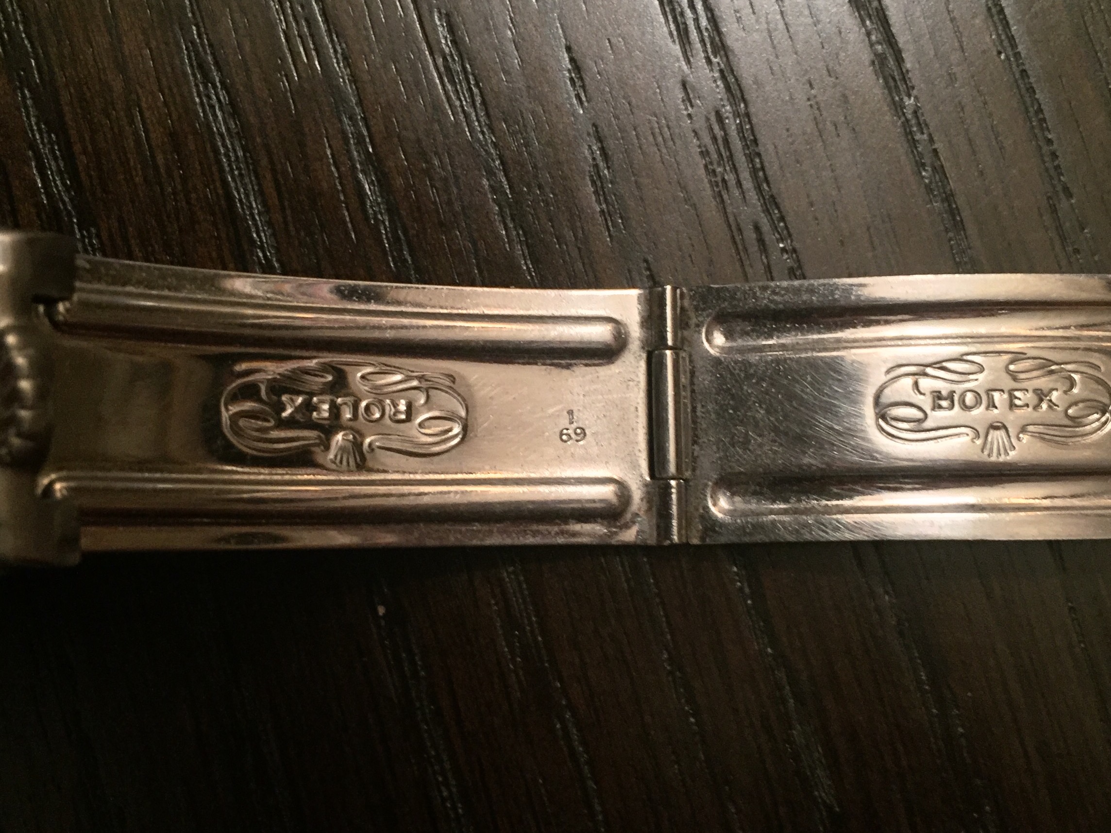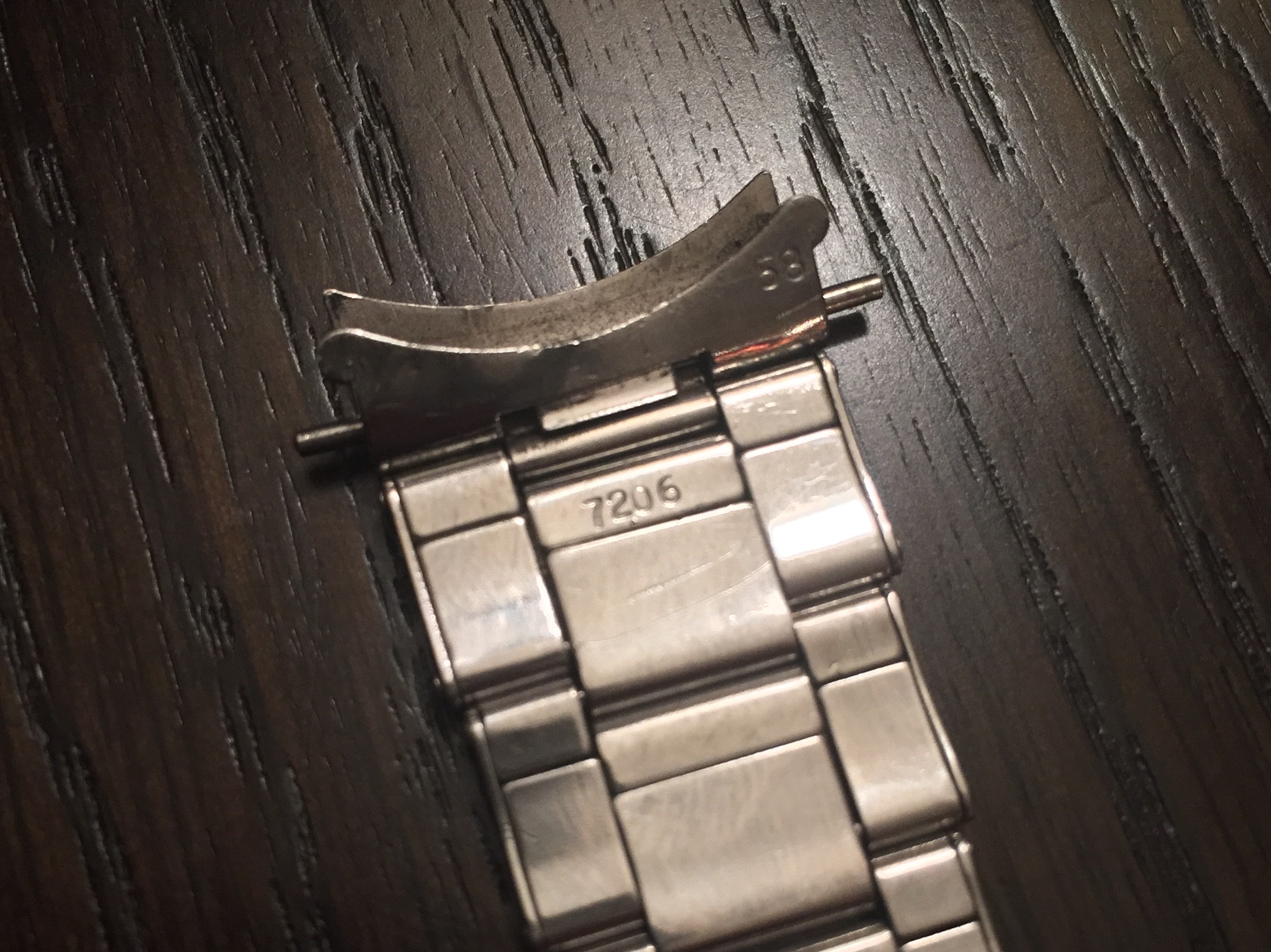 Notes: Introduced in 1954, the 7206 and the 6636 are Swiss bracelets that are favored for their fit over the C&I. The C&I was purportedly made by Rolex USA because of the import duty associated with importing the swiss versions. All three bracelets come with 12 links (7 on one side and 5 on the other). The reference number – 7206 and 6636 – are stamped on the center link closest to the end link on the side with 7 links (but this practice did not start until ~1963). The rivets on the 7206 and 6636 are solid whereas the C&I bracelet rivets have holes in them. The unlabeled end links on the C&I are also flatter and longer than the 58 end links, leading to a less flush fit than their Swiss counterparts. Despite the introduction of the folded-link 7836 at the end of the 1960s, C&I bracelets with date stamps into 1977 are seen.